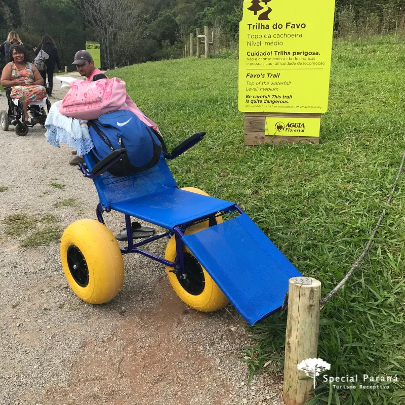 A trilha passando ao lado do Rio Quebra Perna leva à formações rochosas que finalizam em uma linda cachoeira de 30m de altura. A trilha é tranquila, adequada para todas as idades e tem somente 1km. Há até cadeiras de rodas adaptadas no local.