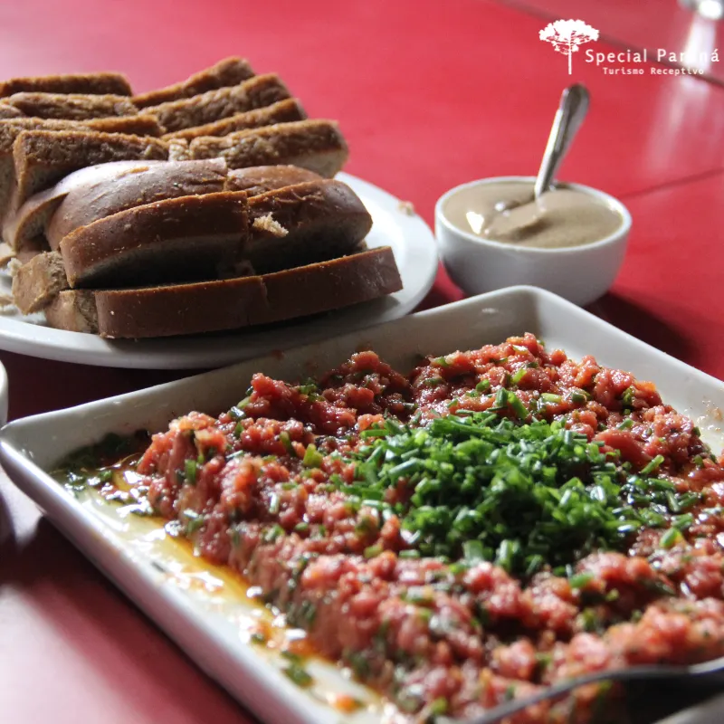 ✔️ Experimente a “carne de onça”, o petisco mais curitibano que existe em uma antiga mercearia convertida em boteco. É a melhor da cidade! O garçon prepara a especialidade na frente dos clientes e você poderá repetir a receita em casa.