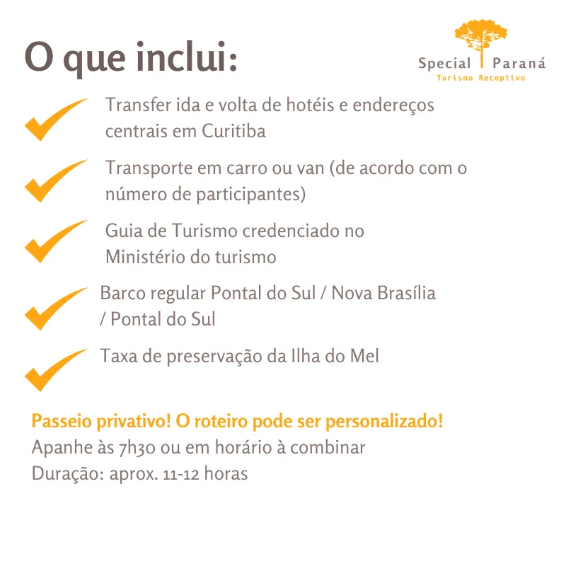 🕗 Horário: saída de Curitiba às 7h30 | Término previsto em Curitiba às 19h00