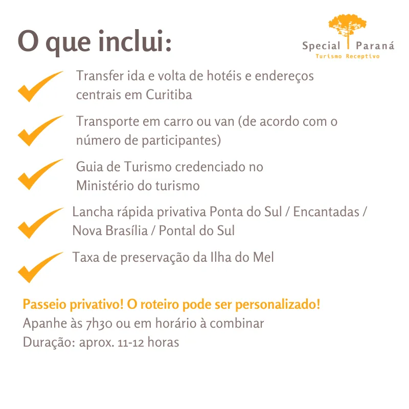 🕗 Horário: saída de Curitiba às 7h30 | Término previsto em Curitiba às 19h00