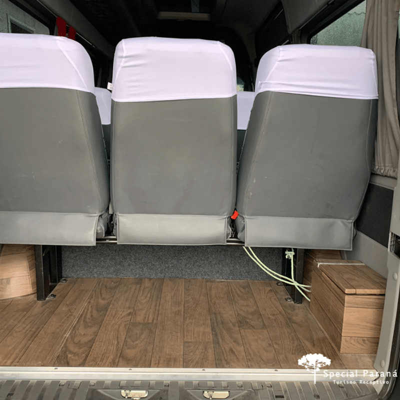É importante considerar o volume de bagagens que levará. O espaço de bagagem da van é limitado.