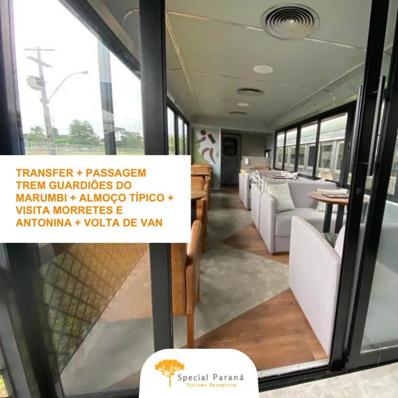 - Faça um dos passeios de trem mais famosos do mundo de Curitiba para Morretes na categoria Guardiões do Marumbi! 33 lugares: janelas panorâmica, varanda central ampla, lanche diferenciado e bebidas à vontade. Saída do trem às 8h30 e chegada prevista às 12h30.