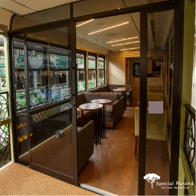 Decoração única, com capacidade para até 28 pessoas em lounges para 2, 3 ou 4 pessoas. Tem varanda central ampla e banheiro a bordo. O passeio inclui o acompanhamento de um guia que conta toda a história e curiosidades da ferrovia. O serviço de bordo inclui lanche e bebidas (água, refri e cerveja à vontade). É possível viajar com ou sem pets!