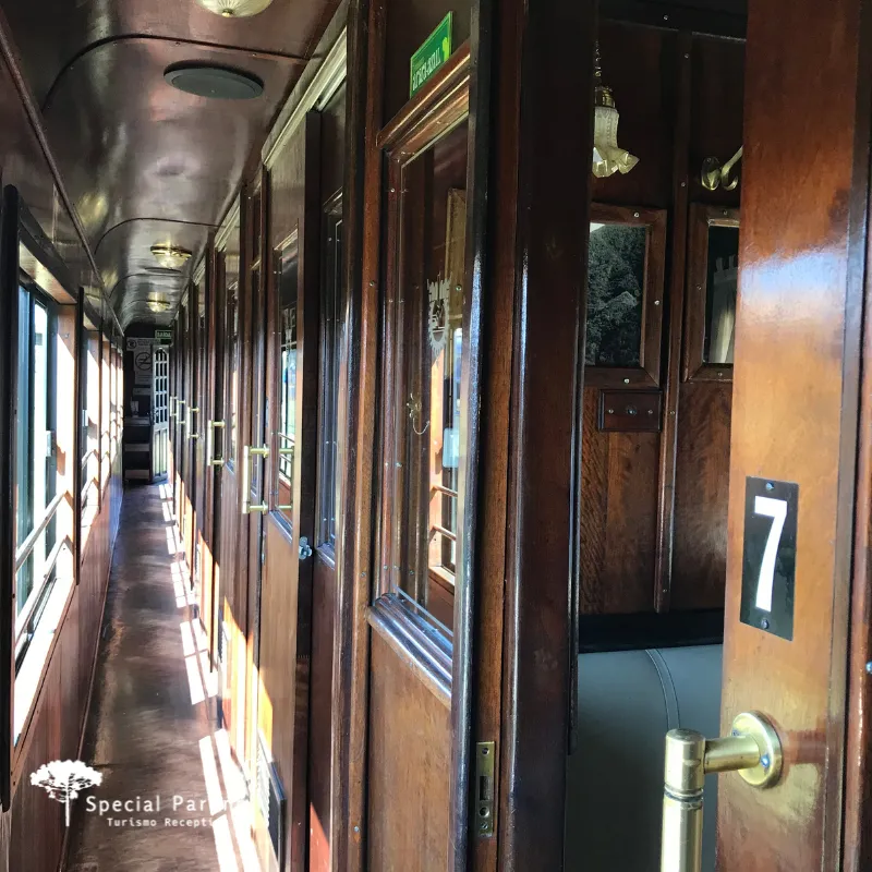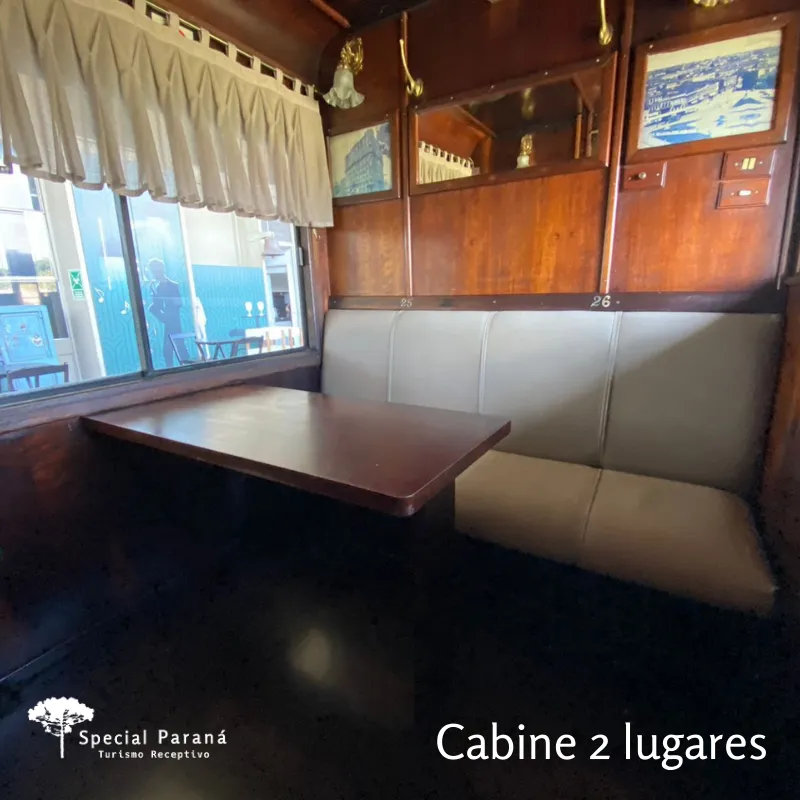 6 cabines que acomodam até 4 pessoas cada e 1 cabine que acomoda 2 pessoas. Um privilégio para até 26 pessoas! As cabines têm uma mesa central, o que as torna muito práticas para famílias. Os camarotes são charmosos e relembram antigos trens de passageiros mostrados em filmes como o do Harry Potter, por exemplo.